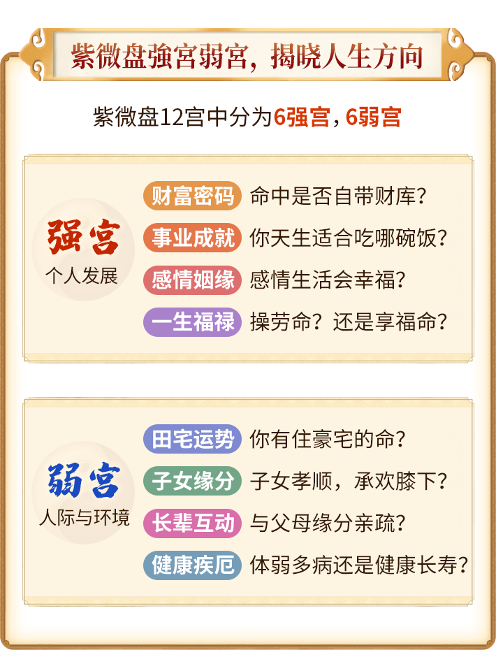紫微斗数是东方中国最著名的占星学,利用人类出生时夏历时间进行斗数星盘的排列,将满天星曜飞布人生十二宫,并据以解释人生命运起伏,紫微斗数经老师团队多年研究,准确率高达95%!